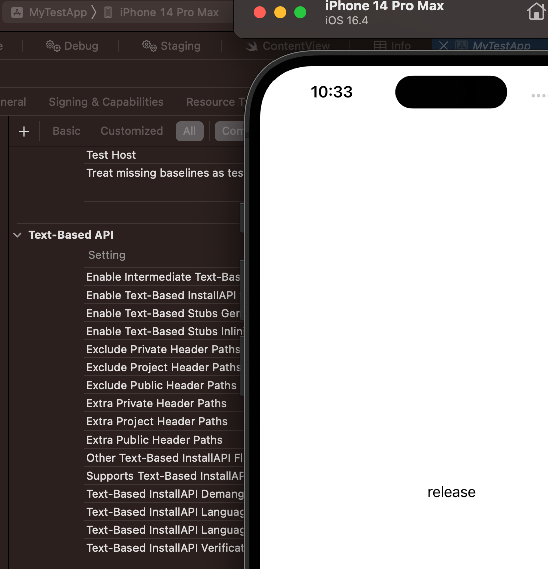 각각 scheme 의 설정에서 Run의 Build Configuration을 해당하는 값으로 변경해줍니다.